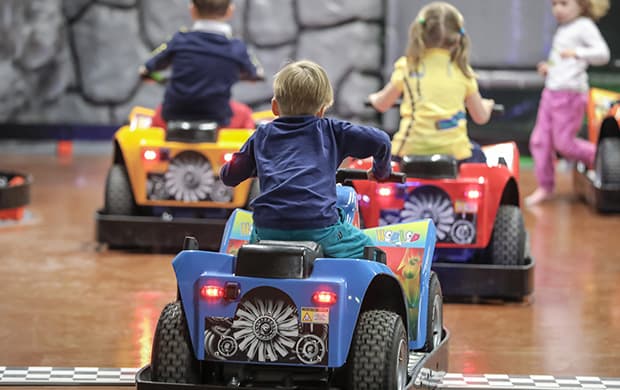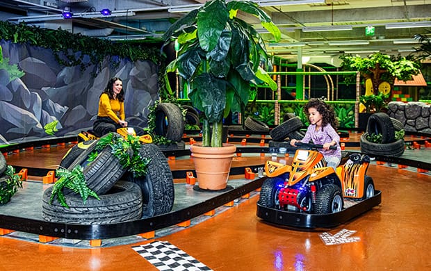 Aja ympäri radan mutkia ja suoria sähkökäyttöisillä autoilla, jotka odottavat innokkaita kuljettajia. Radan kruununjalokivi on tunneli, jossa sukellat luolamaisen valaistuksen ja äänimaailman siimekseen. Tuntuu kuin olisit ajamassa salaperäisessä luolassa!