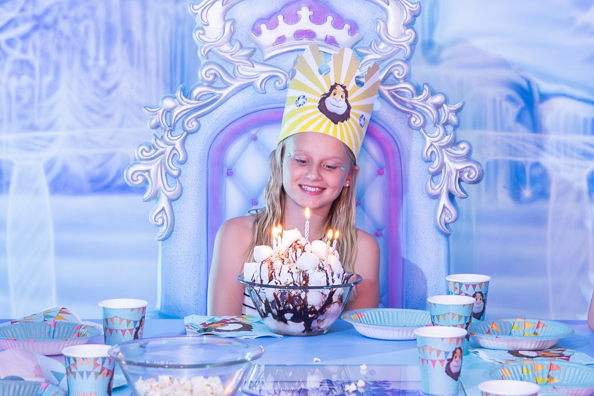 Leo’s super delicious ice cream ball cake is made with ice cream, meringue, chocolate sauce and sprinkles. And of course, there are candles for the birthday boy or girl to blow out! The ice cream party includes: