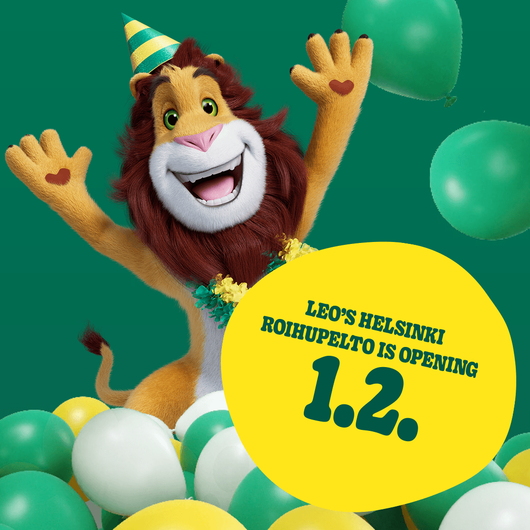 Time to switch! And Leo’s is jumping over to HopLop Helsinki Roihupelto. First up, Leo is throwing a wild and fun opening party on Saturday, so get your tails straight and paws ready to join in! The first 100 will snag a surprise gift bag full of goodies! And there’s more hidden in the jungle: Leo has tucked away all sorts of wild, speedy prizes – and not just any prizes! What about a Year Pass where you can play for 365 days straight? In the midst of all the hustle and bustle, popcorn and drinks are served. Welcome from morning to night, 9 AM to 8 PM, at the familiar old address: Tulppatie 2, 00880 Helsinki.