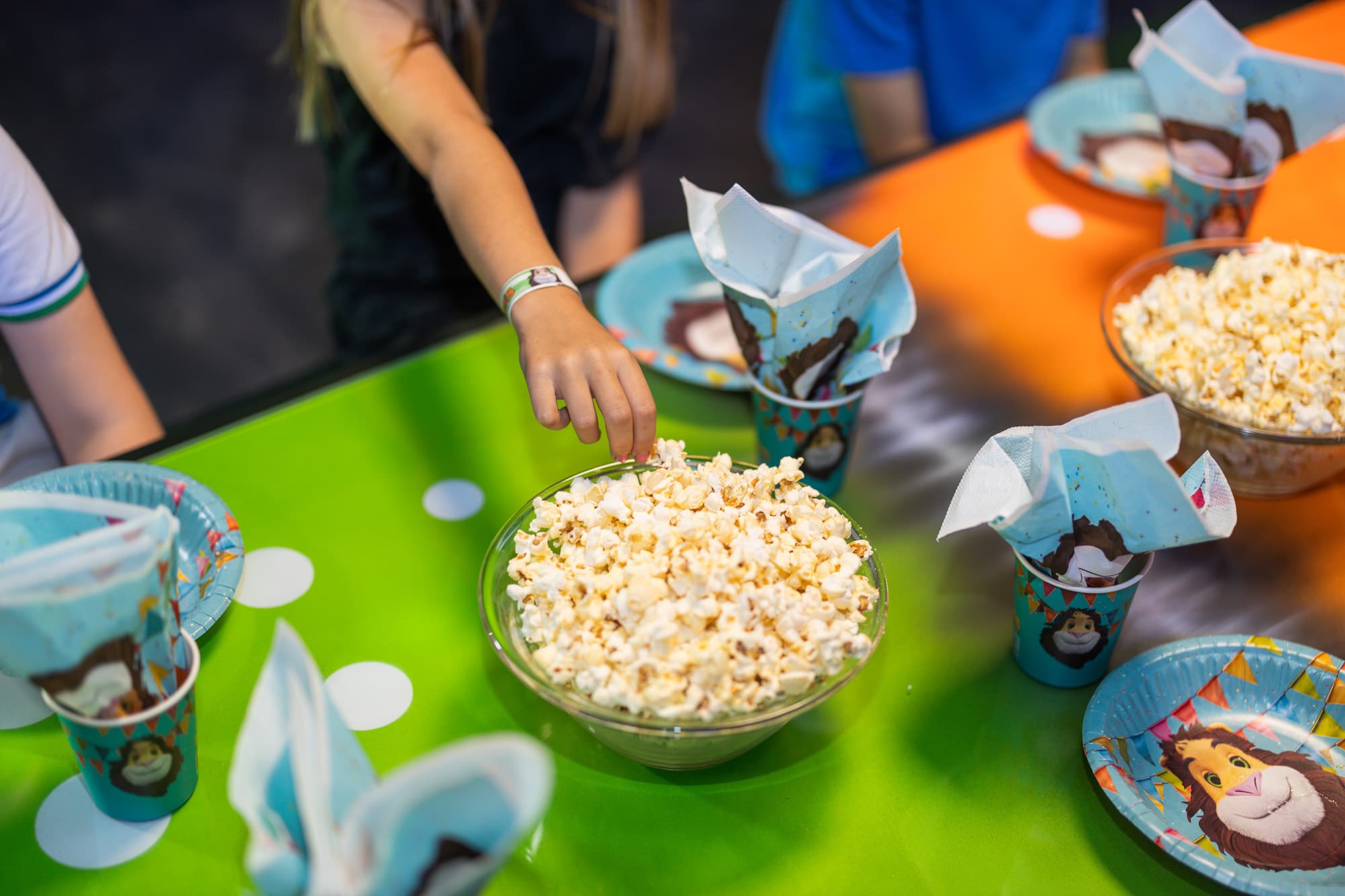 Synttäriohjaaja varmistaa, että juhlat sujuvat. Jäätelökakku saapuu onnittelulaulun kera ja ohjaaja on pyydettäessä paikalla täydentämässä popcornia ja mehua. Ohjaaja ei ole huoneessa koko tunnin ajan.