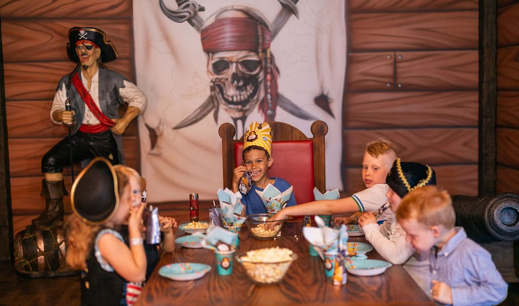 Astu sisään merirosvo synttärihuoneeseemme ja tunne olosi oikeaksi merirosvoksi. Seinät on koristeltu aarrekartoilla, merirosvolipuilla ja jännittävillä yksityiskohdilla, jotka vievät lapset meriseikkailuun.