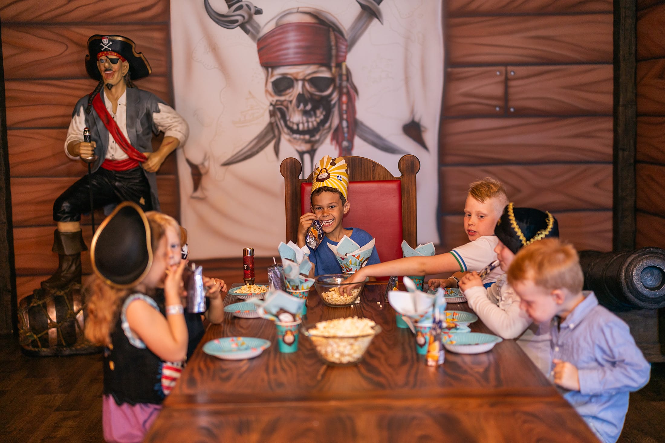 Astu sisään merirosvo synttärihuoneeseemme ja tunne olosi oikeaksi merirosvoksi. Seinät on koristeltu aarrekartoilla, merirosvolipuilla ja jännittävillä yksityiskohdilla, jotka vievät lapset meriseikkailuun.