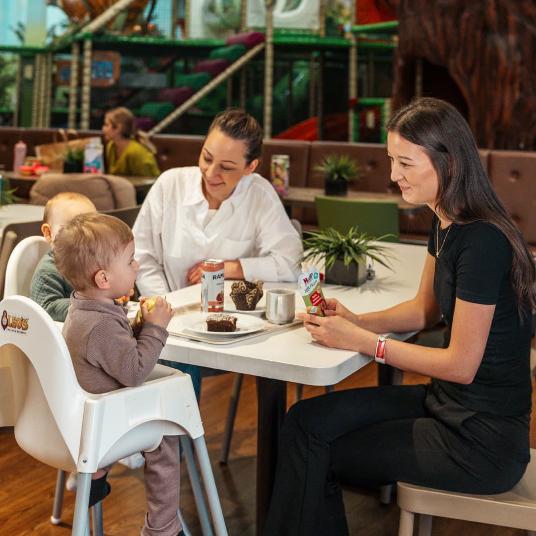 Ihana kahvihetki leikin ja liikunnan lomassa. Valitse erilaisista herkuista ja kuumista juomista.