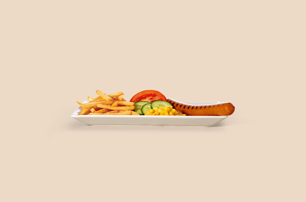 Nakkiateria tuoreen kurkun, tomaatin ja maissin kanssa. Tarjoillaan valitsemasi juoman ja lisukkeen kanssa.