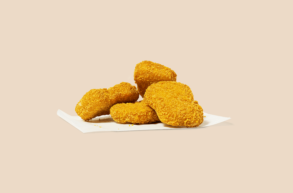 Neljä nugettia tuoreen kurkun, tomaatin ja maissin kanssa. Tarjoillaan valitsemasi juoman ja lisukkeen kanssa.